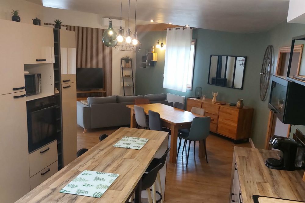 Le gîte est au calme de 140 m² sur terrain de 4500 m². Il est composé : – 1 cuisine tout équipée (lave-vaisselle, four, cafetières, four micro-onde), etc. – 2 salles de douche avec WC. – 1 WC indépendant. – salon/salle à manger – 4 chambres (3 chambres avec lits en 160 cm et 1 chambre avec lits superposés) – terrasse avec piscine chauffée – terrain de boule.