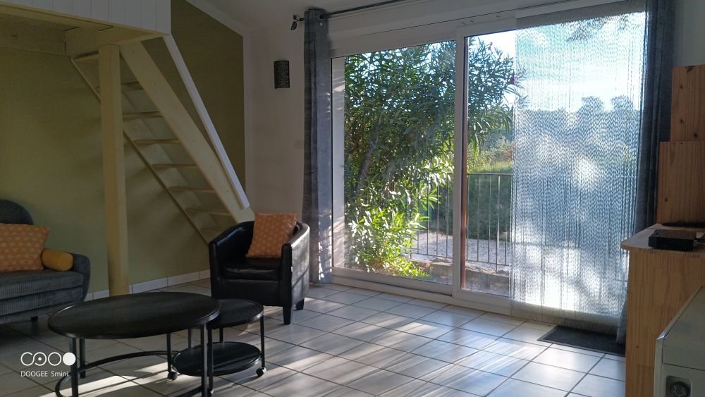 Le salon est équipé d'une télévision et d'un canapé clic clac pour deux couchages supplémentaires ainsi que d'une mini mezzanine avec un lit en 90.